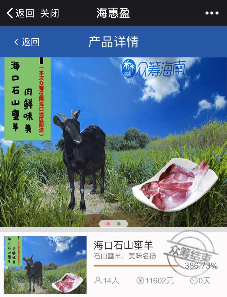 3月19日,海南股權(quán)交易中心“眾籌海南”石山壅羊眾籌項目圓滿結(jié)束,籌集金額11602元,眾籌成功率386.73%,成功實現(xiàn)資金募集目標?!笆桔昭颉笔呛D鲜教禺a(chǎn)之一,因其特殊的喂養(yǎng)飼料和獨特的養(yǎng)殖方式而出名。石山...