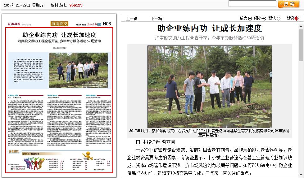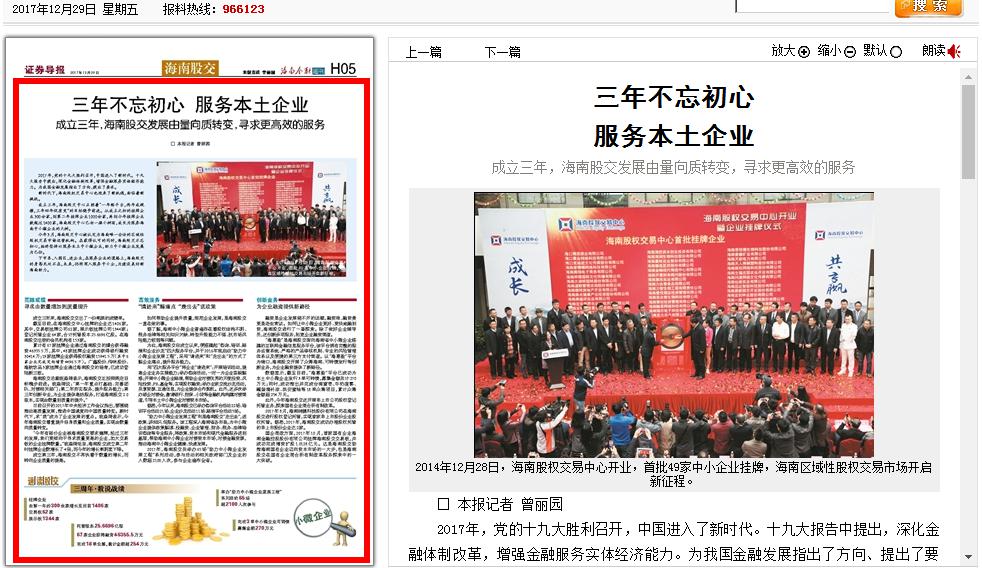 近日,證券導(dǎo)報以四個版面整版報道海南股權(quán)交易中心,關(guān)注股交中心三年以來的發(fā)展。其中,通過一個版面的篇幅,提煉總結(jié)了股交中心的亮點工作及服務(wù)企業(yè)、創(chuàng)新業(yè)務(wù)等方面的突破和股交中心三年以來取得的成績。報道指...