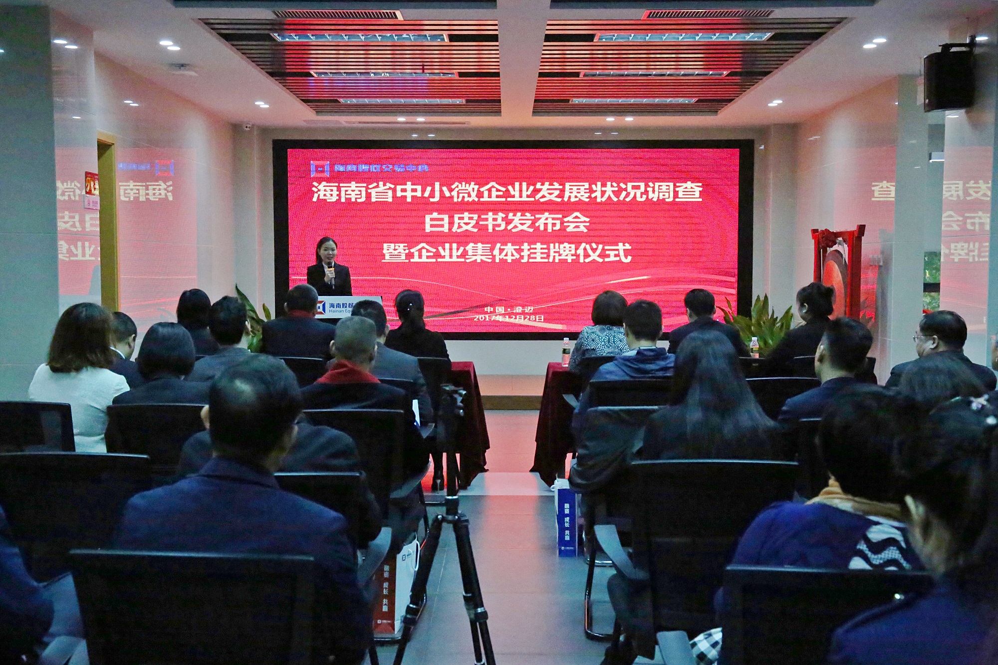12月28日,在海南股權(quán)交易中心成立三周年之際,股交中心“海南省中小微企業(yè)發(fā)展狀況調(diào)查白皮書”發(fā)布會暨企業(yè)集體掛牌儀式在澄邁縣海南生態(tài)軟件園舉行。海南股權(quán)交易中心總經(jīng)理班淼琦、執(zhí)行總經(jīng)理程棟才、副總經(jīng)理兼...