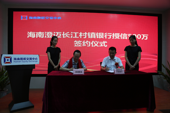 現(xiàn)場,海南澄邁長江村鎮(zhèn)銀行與海南天鴻實業(yè)股份有限公司舉行了授信簽約儀式,天鴻實業(yè)現(xiàn)場獲得500萬元的授信額度。天鴻實業(yè)董事長姜和先生表示,掛牌股交中心,是公司對接資本市場的第一步,接下來公司將扎實服務(wù),規(guī)范企業(yè)發(fā)展,對接投融資機構(gòu),參與海南國際旅游島建設(shè),努力將企業(yè)建成海南知名的環(huán)保農(nóng)業(yè)休閑旅游投資開發(fā)企業(yè)。