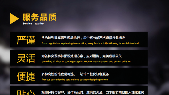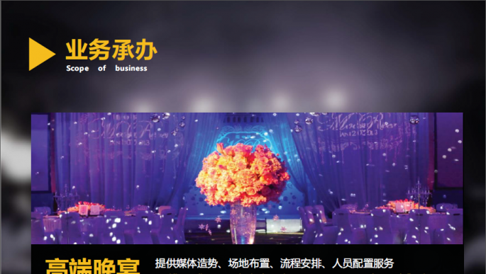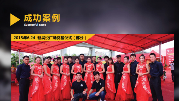 | 企業(yè)說明: | 博峰文化傳播有限公司(下文統(tǒng)稱為博峰)是一家致力于提供文化傳播類服務的專業(yè)機構,我們承接慶典活動、商務會議、高端晚宴、文藝匯演等,能為公益、商業(yè)、娛樂等各類性質的文化傳播活動提供一站式服務。博峰善于整合已有的資源,創(chuàng)立至今已有自己較為完善的團隊,我們提供全程的策劃執(zhí)行、優(yōu)質的演繹資源和高端的舞美設備;我們不斷進步,致力于發(fā)展成為管理體制健全、富有創(chuàng)造力、客戶信賴、享譽業(yè)界的文化傳播服務公司。 博峰以??谑凶鳛楣窘洜I服務的重點,公司經營服務范圍向三亞市輻射擴大。博峰作為文化傳播公司,主要為公司、團體、政府,個人提供各類傳播活動。公司經營范圍大致分為5類,分別為演出經紀類、品牌推廣類、展覽展示類、慶典類、模特禮儀類,博峰主要以品牌推廣類、展覽展示類、慶典類3項創(chuàng)意技術類項活動為主。