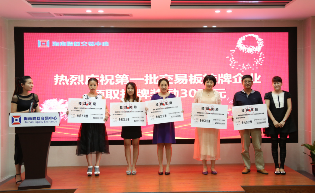 交易板掛牌企業(yè)代表海南迅達智能科技股份有限公司總經(jīng)理張寶表示,對中小微企業(yè)來說,進軍資本市場的股改稅負成本是一筆不小的支出,海口市政府急大家之所急,及時出臺了財政獎勵和補貼政策,今天三十萬補貼的發(fā)放,對掛牌企業(yè)而言是久旱逢甘露。在接下來的日子里,大家一定會規(guī)范企業(yè)經(jīng)營,快速做大做強,同時,大家也希望借助海南股權(quán)交易中心的平臺,加快對接投資機構(gòu)和金融機構(gòu)。當場,海口市財政局和金融辦,分別給首批十家在海南股權(quán)交易中心交易板掛牌的企業(yè)頒發(fā)了30萬元財政獎勵。