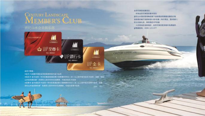 4、三亞世紀(jì)山水海景酒店(四星級(jí)) 按照高星級(jí)建造的三亞世紀(jì)山水海景酒店,于2009年8月1日開業(yè),由三亞尤尼克地產(chǎn)開發(fā)有限公司投資興建,酒店設(shè)施配套齊全,擁有豪華標(biāo)準(zhǔn)房、高級(jí)海景房、豪華行政套房等共177間/套,為客人提供貼心周到、舒適優(yōu)質(zhì)的個(gè)性化服務(wù)。入住世紀(jì)山水海景酒店能邀您獨(dú)享濱海浪漫、盡攬碧海藍(lán)天,看漁舟晚唱、賞落日夕陽,將使您的度假行程在充沛的陽光、綠椰、海韻、大海、沙灘環(huán)境里留下最美的回憶。 5、三亞世紀(jì)豪庭酒店(五星級(jí))(獨(dú)立注冊(cè)5星級(jí)品牌) 三亞世紀(jì)豪庭酒店是由三亞世紀(jì)山水酒店管理公司投資、管理的首家精品五星酒店。酒店位于美麗的三亞市大東海旅游區(qū),東臨鳳凰路,南接榆亞路,西觀臨春河,北望白鷺公園,毗鄰“沃”天堂、免稅店,距離三亞市政府、解放路步行街約2公里、距離三亞火車站8公里,三亞鳳凰國際機(jī)場(chǎng)17.5公里;酒店周邊飲食、購物、酒吧一條街娛樂配套齊全,與繁華的時(shí)代海岸國際游艇碼頭隔河相望,環(huán)境優(yōu)雅,鬧中取靜,位置優(yōu)越,是三亞市區(qū)高星級(jí)酒店又一顆璀璨明珠。 我們的優(yōu)勢(shì):在本公司的不斷壯大和發(fā)展的過程中,我們將繼續(xù)努力為多方提供更多的利益與回報(bào)率,營造如下的雙贏局面: ? 產(chǎn)權(quán)式酒店管理專家,全國成功經(jīng)營管理四家產(chǎn)權(quán)式酒店 ? 穩(wěn)定的租金承諾回報(bào),免費(fèi)住房置換體系,個(gè)性化定制服務(wù) ? 廣泛的會(huì)員群體- 3892人,其中業(yè)主1965人,是潛在的地產(chǎn)投資客戶 ? 完善系統(tǒng)的客房及公共區(qū)域維保計(jì)劃,保證業(yè)主的物業(yè)處于良好狀態(tài) ? 成功的項(xiàng)目案例,值得信賴的合作伙伴 ? 三亞置業(yè)、全國度假(完善、便捷的住宿置換管理體系)