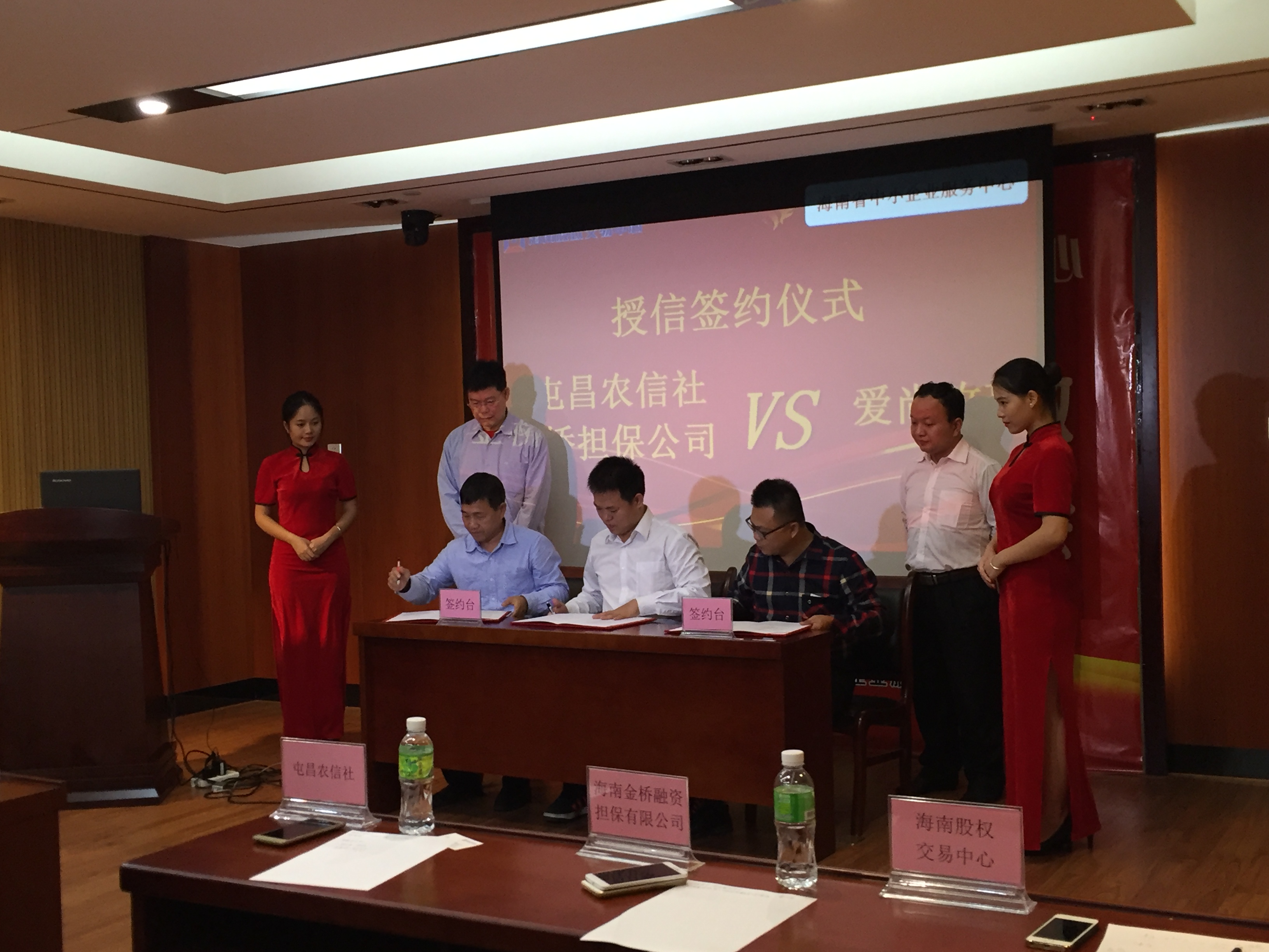 現(xiàn)場,屯昌縣農(nóng)村信用合作聯(lián)社、海南金橋融資擔(dān)保有限公司分別與股交中心掛牌企業(yè)海南愛尚玫瑰實(shí)業(yè)有限公司、海南臺莉早餐服務(wù)有限公司簽訂授信協(xié)議,就開展合作達(dá)成初步意向。隨后,海南臺莉早餐服務(wù)有限公司許正章作為簽約企業(yè)代表進(jìn)行了發(fā)言。