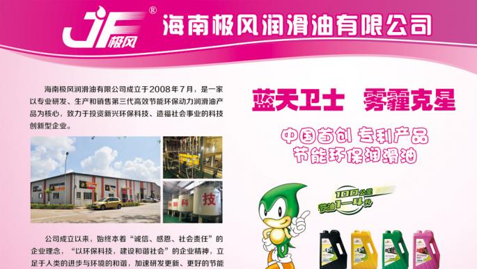 | 企業(yè)說明: | 海南極風(fēng)高科技股份有限公司是以專業(yè)研發(fā)、生產(chǎn)和銷售節(jié)能環(huán)保潤滑油產(chǎn)品為核心,致力于投資新興環(huán)??萍?、造福社會(huì)事業(yè)的高新技術(shù)企業(yè)。 自主研發(fā)生產(chǎn)的 “極風(fēng)牌”節(jié)能環(huán)保汽車發(fā)動(dòng)機(jī)潤滑油,以其有效降低汽車尾氣碳?xì)浠衔铮℉C)和一氧化碳(CO)排放量的環(huán)保功能,平均節(jié)油率17.47%(百公里節(jié)省燃油1-4升),有效降低汽車尾氣PM2.5顆粒物排放達(dá)36.4%,HC、CO、NOX等有毒有害氣體排放數(shù)據(jù)均優(yōu)于歐Ⅴ標(biāo)準(zhǔn),堪稱藍(lán)天衛(wèi)士、霧霾克星。因此,深受廣大用戶的認(rèn)可和好評(píng),迅速成為汽車(船)發(fā)動(dòng)機(jī)潤滑油換代升級(jí)首選的領(lǐng)先產(chǎn)品。 回顧海南極風(fēng)高科技股份有限公司的創(chuàng)業(yè)歷程,就是堅(jiān)持理想創(chuàng)新發(fā)展的實(shí)踐歷程。2011年8月在中國(三亞)國際熱帶雨林汽車越野挑戰(zhàn)賽上,“極風(fēng)”成為自由島參賽車隊(duì)專用潤滑油,并助力該車隊(duì)奪得第三名,實(shí)現(xiàn)了歷史性的突破。 2011年11月獲得海南省高新技術(shù)項(xiàng)目認(rèn)定。 2013年2月獲得國內(nèi)同行業(yè)唯一的國家發(fā)明專利授權(quán),發(fā)明專利名稱:節(jié)能環(huán)保汽車發(fā)動(dòng)機(jī)潤滑油,專利號(hào):ZL 201110095592.6。 2013年8月順利通過ISO9001質(zhì)量管理體系認(rèn)證。 2013年5月獲得全國交通運(yùn)輸節(jié)能減排推薦產(chǎn)品(技術(shù))榮譽(yù)。 2015年10月被評(píng)為高新技術(shù)企業(yè)。 公司為邁向資本市場(chǎng)做好準(zhǔn)備,于2015年進(jìn)行了股份制改制。 今天,“極風(fēng)”正以中華傳統(tǒng)文化“太極”之“極”、漢唐精神“大風(fēng)歌”之“風(fēng)”植根市場(chǎng),深入人心。