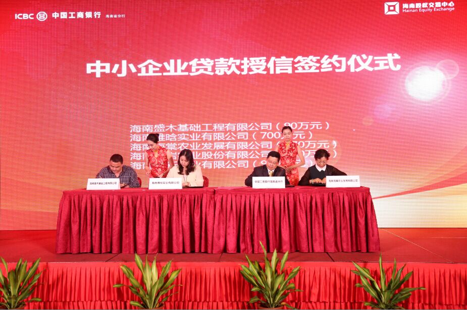 隨后,省工行吳傳武副行長與5家企業(yè)正式簽訂了貸款協(xié)議和授信協(xié)議,在股交中心的撮合之下,省工行一共向5家企業(yè)提供合計(jì)2260萬元的貸款和授信。其中,海南立新實(shí)業(yè)有限公司獲得900萬元授信,海南雅晗實(shí)業(yè)有限公司獲得700萬元貸款,海南仙巖實(shí)業(yè)股份有限公司獲得300萬元授信,海南海棠農(nóng)業(yè)發(fā)展有限公司獲得270萬元貸款,海南盛木基礎(chǔ)工程有限公司獲得90萬元貸款。