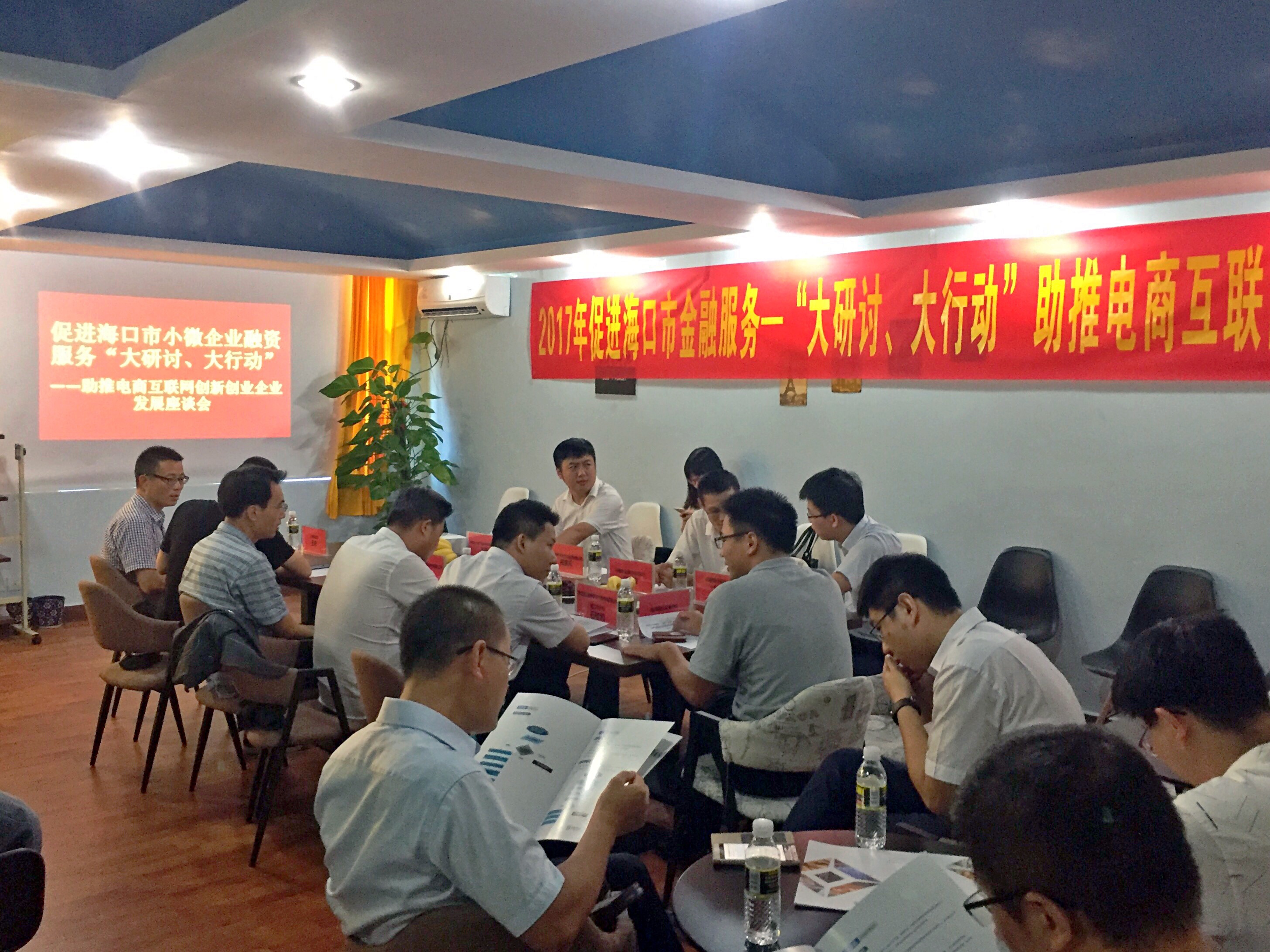 本次2017年促進(jìn)??谑薪鹑诜?wù)—“大研討、大行動”助推電商互聯(lián)網(wǎng)創(chuàng)新創(chuàng)業(yè)企業(yè)發(fā)展座談會活動,由??谑猩虅?wù)局及??谑锌乒ば啪致?lián)合指導(dǎo),??谑兄行∑髽I(yè)公共服務(wù)平臺主辦,海南青創(chuàng)投資管理有限公司承辦,海南股權(quán)交易中心協(xié)辦?;顒又荚谏疃韧诰螂娮由虅?wù)、互聯(lián)網(wǎng)創(chuàng)新創(chuàng)業(yè)企業(yè)實際需求,推動金融資源要素更多向電商互聯(lián)網(wǎng)企業(yè)配置,幫助互聯(lián)網(wǎng)創(chuàng)新創(chuàng)業(yè)企業(yè)克服融資困難,滿足企業(yè)金融需求,促進(jìn)中小微企業(yè)發(fā)展。