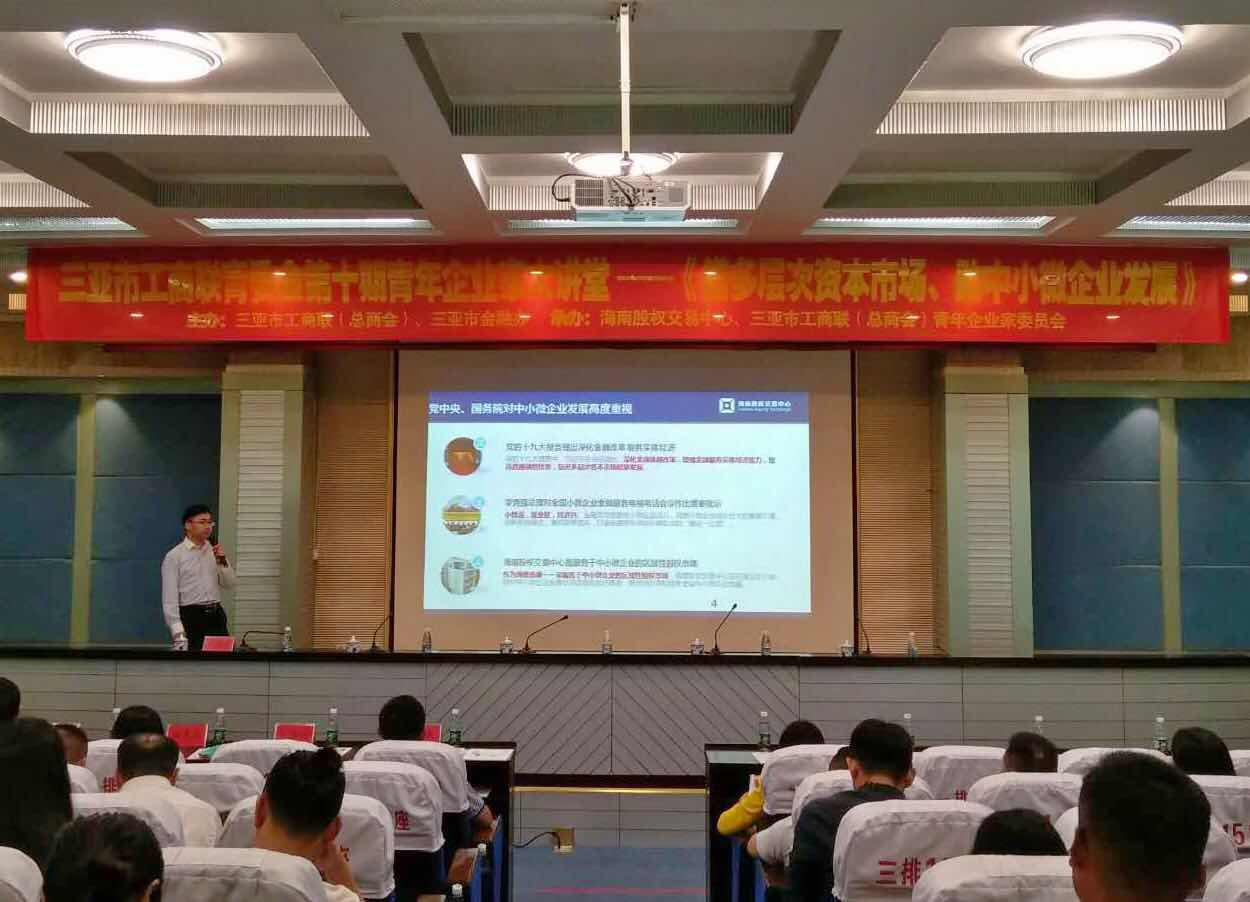培訓(xùn)過程中,程棟才執(zhí)行總經(jīng)理以“借助多層次資本市場,助力中小微企業(yè)發(fā)展”為主題,為在場企業(yè)介紹了2017年海南省中小微企業(yè)的發(fā)展?fàn)顩r及海南股權(quán)交易中心下一步的發(fā)展目標(biāo),現(xiàn)場分析了目前的十二大重點(diǎn)產(chǎn)業(yè)及三亞“一支柱兩支撐”下政府產(chǎn)業(yè)政策,并就如何企業(yè)有效利用資本市場規(guī)范發(fā)展及如何快速進(jìn)入?yún)^(qū)域性股權(quán)市場展開了一系列的講解。