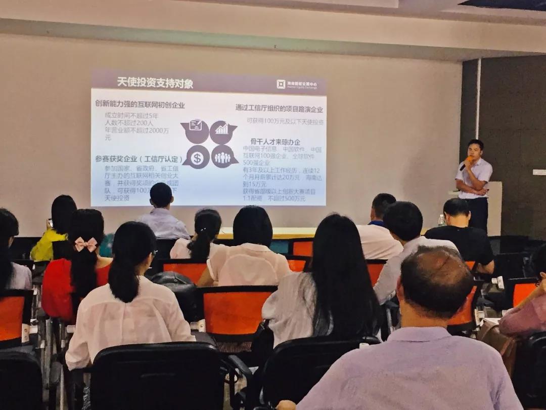 股交中心機構合作部負責人蔣文斌為在場企業(yè)介紹了區(qū)域性股權交易市場的現(xiàn)狀及股交中心的發(fā)展狀況,并就“股交中心如何助力海南高新技術及科技型企業(yè)發(fā)展”這一核心問題進行了詳細的說明和講解,同時,向在場的企業(yè)介紹了股交中心于6月20日正式設立的海南首個專注于互聯(lián)網(wǎng)初創(chuàng)企業(yè)天使投資的服務板塊“天使板”及天使投資相關情況,鼓勵和歡迎高新技術及科技型企業(yè)掛牌天使板,通過天使板實現(xiàn)企業(yè)融資和發(fā)展的目標。