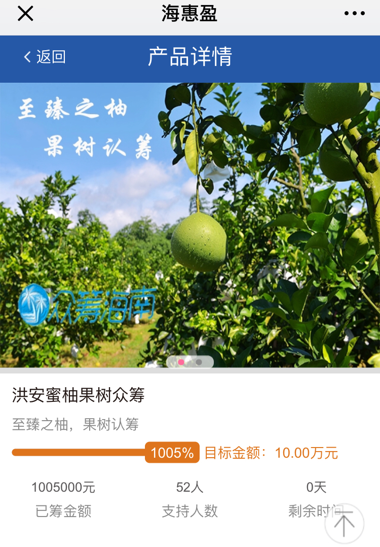 去年底,為了幫助企業(yè)解決短期資金流轉(zhuǎn)問題,海南股權(quán)交易中心聯(lián)合掛牌企業(yè)澄邁洪安農(nóng)業(yè)開發(fā)有限公司發(fā)起了存續(xù)期為9個月的“洪安蜜柚果樹眾籌”項目,項目在股交中心綜合金融服務(wù)平臺“?;萦卑l(fā)布后短時間內(nèi)達(dá)成了募集資金目標(biāo),最終募集金額達(dá)100.5萬元。
