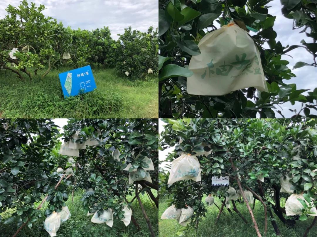 小編看到,目前所有參與眾籌的蜜柚果樹每棵皆碩果累累,壓得樹枝彎下了腰,為了防止暴雨暴曬蟲害等外部因素對蜜柚生長的影響,洪安莊園還給即將被采摘的蜜柚一個個單獨穿上了印有“柚子夫婦”logo的“外衣”,每棵樹也有自己單獨的編號和姓名牌,生長得飽滿豐盈的蜜柚就等待著主人們的采摘啦