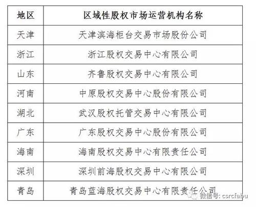 根據(jù)《國務(wù)院辦公廳關(guān)于規(guī)范發(fā)展區(qū)域性股權(quán)市場的通知》(國辦發(fā)〔2017〕11號)、《區(qū)域性股權(quán)市場監(jiān)督管理試行辦法》(證監(jiān)會令第132號)有關(guān)規(guī)定,區(qū)域性股權(quán)市場運營機(jī)構(gòu)名單由省級人民政府實施管理并予以公告,同時向證監(jiān)會備案。自2018年4月27日公示《全國區(qū)域性股權(quán)市場運營機(jī)構(gòu)備案名單(第一批)》以來,9個地區(qū)按規(guī)定要求向我會備案區(qū)域性股權(quán)市場運營機(jī)構(gòu)情況。具體名單如下: