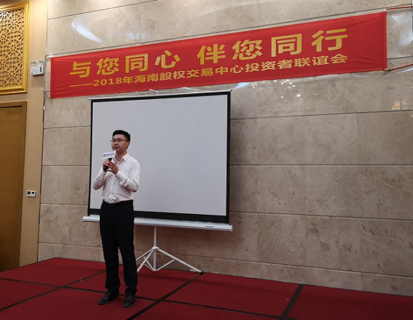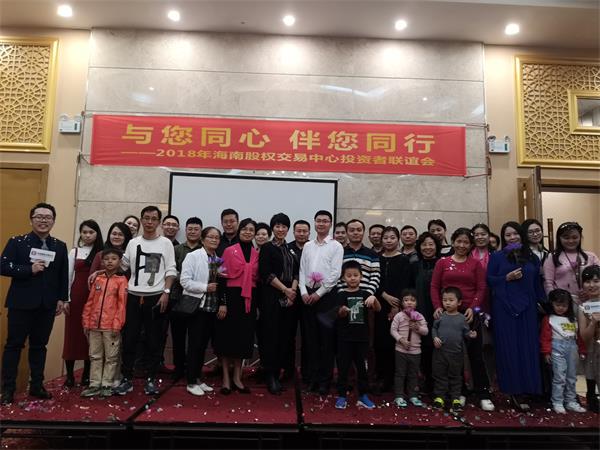 為感謝投資者長期以來的支持與厚愛,2018年12月9日下午,海南股交在海口寶發(fā)勝意酒店舉行了以“與您同心 伴您同行”為主題的投資者聯(lián)誼會。海南股交執(zhí)行總經理程棟才出席活動與60多位投資者及親屬齊聚一堂,共同分享企業(yè)發(fā)展成果,展望美好明天。