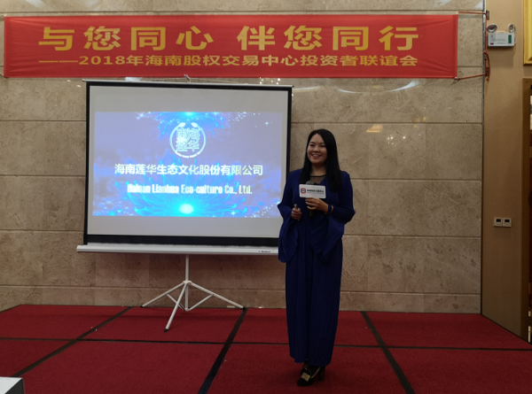 聯(lián)誼會現(xiàn)場,海南蓮華(海南股交掛牌企業(yè))總經理賀霞進行了企業(yè)介紹及產品展示,并分享了企業(yè)在海南股交掛牌后借助資本市場力量推動企業(yè)持續(xù)健康發(fā)展的成功經驗。