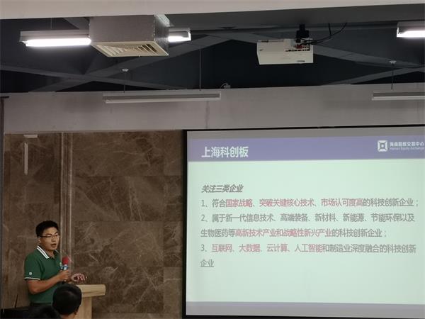 在培訓(xùn)環(huán)節(jié),公司機(jī)構(gòu)合作部負(fù)責(zé)人為到訪企業(yè)介紹了上交所科創(chuàng)板的設(shè)立目的、市場定位、上市指標(biāo)及上市意義。他表示,為更好的服務(wù)本省高新技術(shù)企業(yè)和科技型企業(yè),公司去年聯(lián)合海南省科技廳設(shè)立了科創(chuàng)板,目的是提供現(xiàn)代化金融服務(wù)助力海南高新技術(shù)企業(yè)和科技型企業(yè)轉(zhuǎn)型、升級(jí)。幫助企業(yè)優(yōu)化治理、規(guī)范發(fā)展,推動(dòng)企業(yè)對(duì)接更高資本市場,為企業(yè)登陸上交所科創(chuàng)板蓄力。