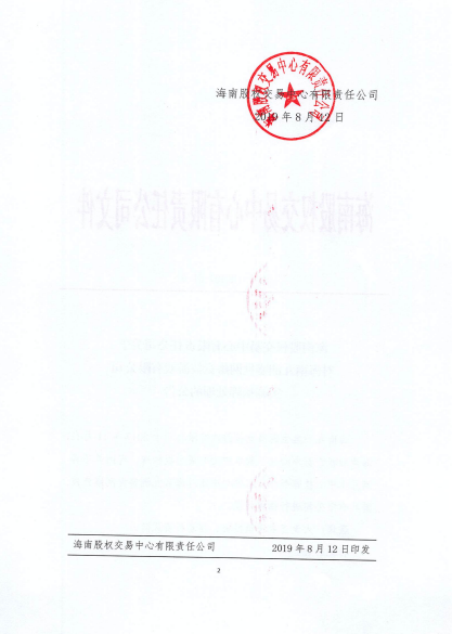 海南股權(quán)交易中心有限責(zé)任公司 關(guān)于對(duì)海南九洲盛世網(wǎng)絡(luò)競(jìng)技游戲有限公司 實(shí)施摘牌處理的公告