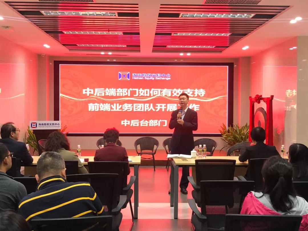 最后,海南股交執(zhí)行總經(jīng)理程棟才總結(jié)指出,海南股交作為多層次資本市場(chǎng)體系的重要組成部分,作為地方人民政府扶持中小微企業(yè)政策措施的綜合運(yùn)用平臺(tái)和服務(wù)中小微企業(yè)的綜合金融服務(wù)平臺(tái),在海南建設(shè)自由貿(mào)易港的東風(fēng)下,公司及個(gè)人都面臨著新的機(jī)遇和挑戰(zhàn),我們必須堅(jiān)定發(fā)展目標(biāo),凝聚全員力量,克服困難,迎難而上,爭(zhēng)取早日實(shí)現(xiàn)海南股交業(yè)務(wù)轉(zhuǎn)型升級(jí)。同時(shí),全面建設(shè)學(xué)習(xí)型組織,提升全員專業(yè)水平、充分發(fā)揮資源聚集和運(yùn)用能力,打造一支能戰(zhàn)斗、專業(yè)性強(qiáng)的優(yōu)良隊(duì)伍。下一步,海南股交還將圍繞加強(qiáng)創(chuàng)新業(yè)務(wù)探索力度、增強(qiáng)投融資服務(wù)能力、提升海南股交品牌影響力、優(yōu)化項(xiàng)目管理和投后管理能力等方面再開(kāi)展相關(guān)專題的交流和培訓(xùn)活動(dòng),為做好未來(lái)的企業(yè)服務(wù)工作奠定更加堅(jiān)實(shí)的基礎(chǔ)。