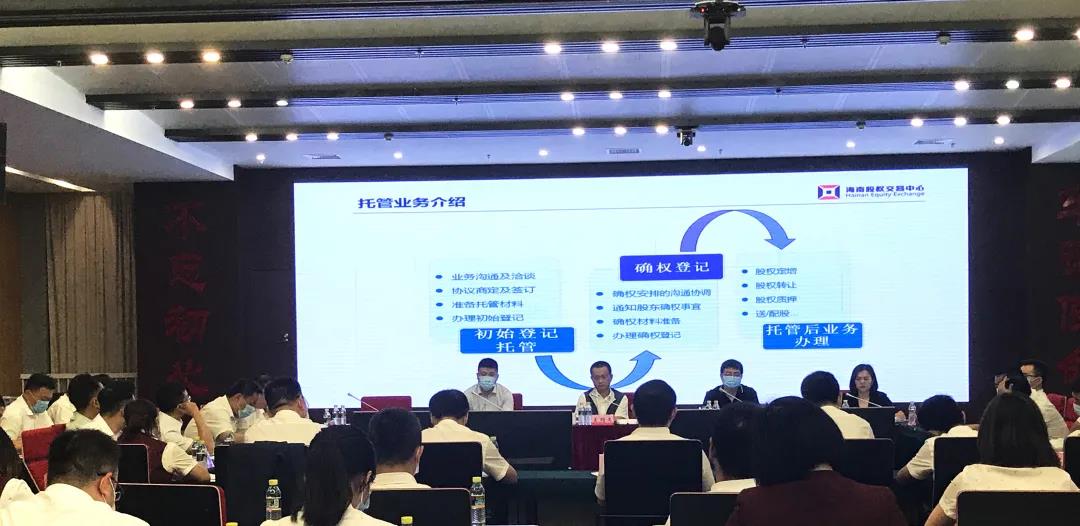 海南股交工作人員向與會人員介紹股權(quán)托管政策及我省農(nóng)商行股權(quán)托管業(yè)務(wù)開展情況,重點(diǎn)講解了初始登記及確權(quán)登記的流程和細(xì)則。在互動環(huán)節(jié),各市縣行社股權(quán)登記托管工作負(fù)責(zé)人就托管工作中遇到的問題及存在的難點(diǎn)、監(jiān)管政策和后續(xù)辦理流程等問題進(jìn)行了充分交流。