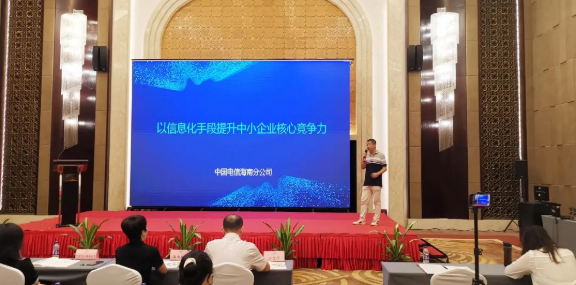 會上,中國電信海南公司、中興通信、海南省通信產業(yè)服務有限公司、深圳盛陽科技股份有限公司等相關負責人分別就可為中小企業(yè)提供的信息化產品進行了分享。現(xiàn)場通過視頻以及產品演示的方式,向參會代表介紹了現(xiàn)階段國家鼓勵中小企業(yè)信息化轉型的大方向以及5G時代帶來的現(xiàn)代技術發(fā)展浪潮。
