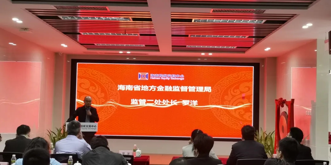 12月28日上午,海南股交企業(yè)掛牌暨企業(yè)表彰儀式在老城軟件園辦公樓交易大廳舉行。海南省地方金融監(jiān)督管理局監(jiān)管二處處長羅洋、海南省工業(yè)和信息化廳中小企業(yè)處副處長孫丹、海南金融控股股份有限公司黨總支委員、副總經(jīng)理吳曄軍,黨總支委員總經(jīng)理助理朱宏亮、海南大唐發(fā)控股權投資基金管理有限公司董事長王濤、深圳同創(chuàng)天策企業(yè)發(fā)展有限公司董事長蔡成巨以及掛牌企業(yè)代表、媒體記者等近80余人參加了此次活動。