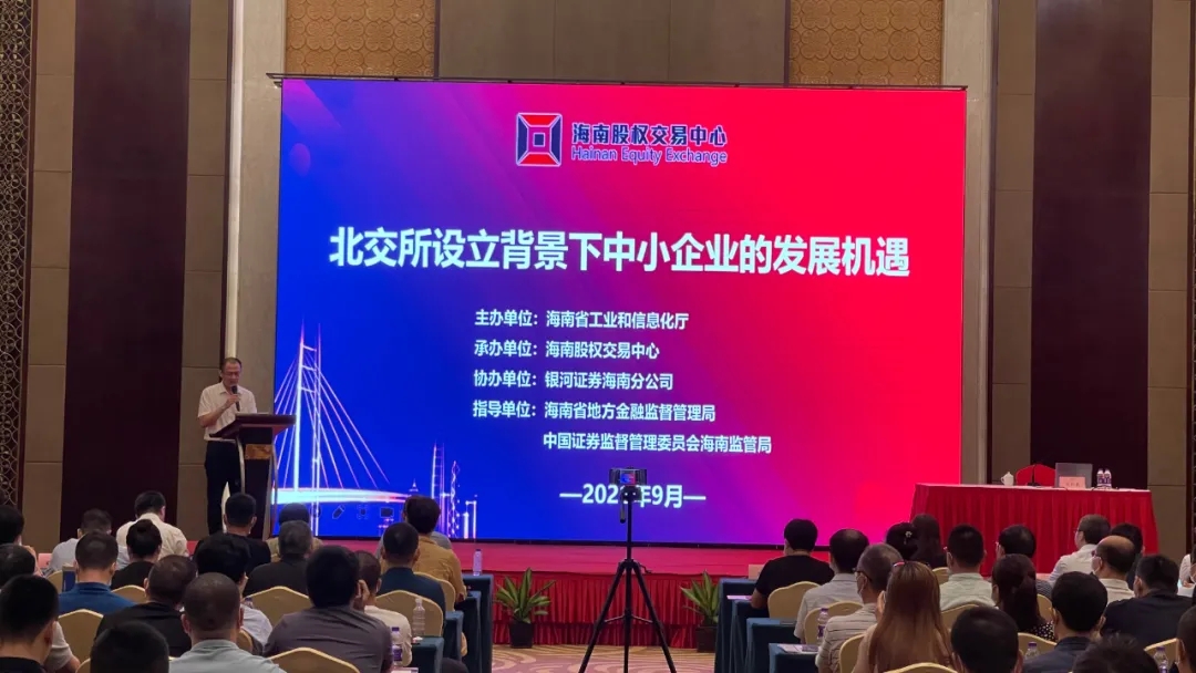 為幫助我省中小企業(yè)深入了解北京證券交易所,掌握資本市場的新機遇,9月24日,海南省工業(yè)和信息化廳聯(lián)合海南股權(quán)交易中心邀請業(yè)內(nèi)資深專家舉行“北交所設(shè)立背景下中小企業(yè)的發(fā)展機遇”主題培訓(xùn),幫助中小企業(yè)熟悉資本市場規(guī)則,適應(yīng)新形勢做好上市路徑規(guī)劃。海南省工業(yè)和信息化廳、海南省地方金融監(jiān)督管理局、中國證監(jiān)會海南監(jiān)管局、海南省工商聯(lián)及我省多家新三板掛牌企業(yè)、重點上市后備企業(yè)、專精特新企業(yè)代表和金融機構(gòu)、投資機構(gòu)、券商、商協(xié)會代表約200人參加活動。
