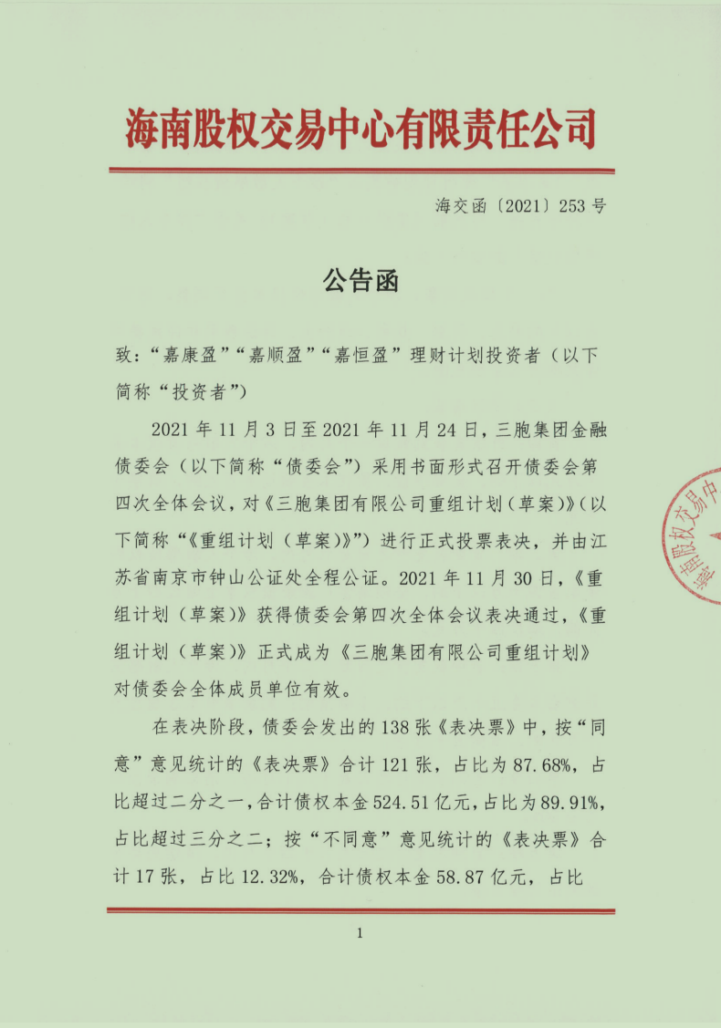 致“嘉康盈”“嘉順盈”“嘉恒盈”理財計劃投資者的公告函