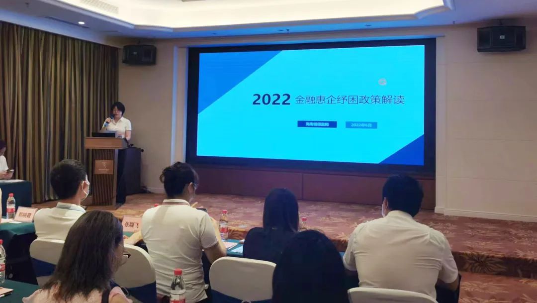 會上,工作人員向參會企業(yè)發(fā)放了金融機構產(chǎn)品宣傳資料及融資需求表。海南銀保監(jiān)局介紹了金融惠企紓困政策,對《中國銀保監(jiān)會辦公廳關于進一步做好受疫情影響困難行業(yè)企業(yè)等金融服務的通知》《中國銀保監(jiān)會海南監(jiān)管局辦公室關于進一步做好疫情防控期間金融支持經(jīng)濟社會持續(xù)穩(wěn)定發(fā)展的通知》等有關條款進行詳細解讀。