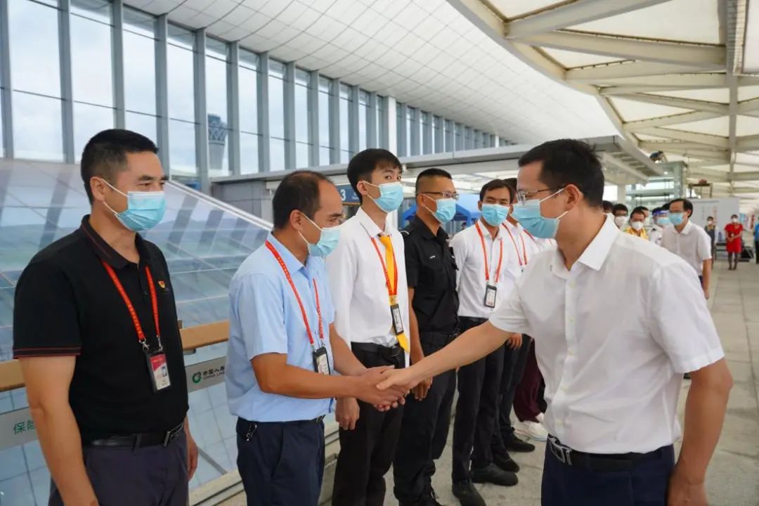 10月1日上午,海南控股黨委書記、董事長周軍平到??诿捞m國際機場和全球精品免稅城,檢查安全生產(chǎn)、節(jié)日服務保障等情況,向假期堅守崗位的一線員工送上節(jié)日祝福和慰問。