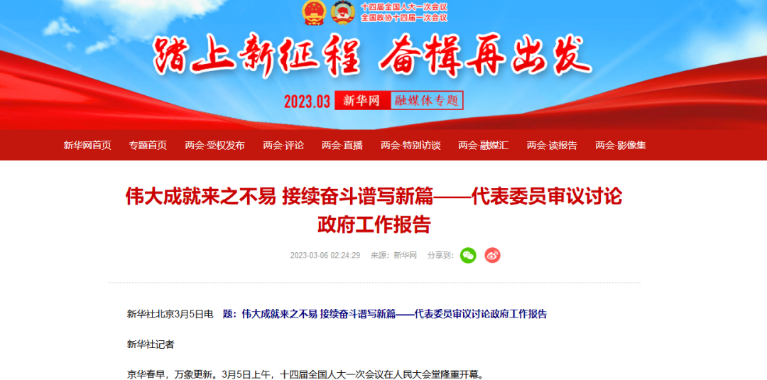 報道圍繞政府工作報告,采訪出席兩會的全國人大代表、全國政協(xié)委員。報道提及:
