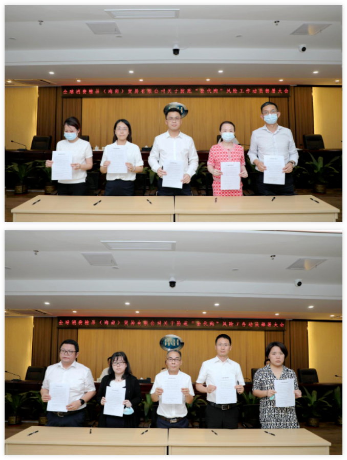 5月6日下午,在全省打擊走私工作會議結束后,??厝蚓费杆俳M織召開防范“套代購”風險工作動員部署會,學習貫徹習近平總書記關于防控“套代購”走私重要指示批示精神和省委書記馮飛、省政府代省長劉小明重要講話精神以及陳懷宇副省長專題會議精神,對全球精品防范“套代購”風險作出安排部署。海南控股黨委書記、董事長周軍平出席會議并提出工作要求。