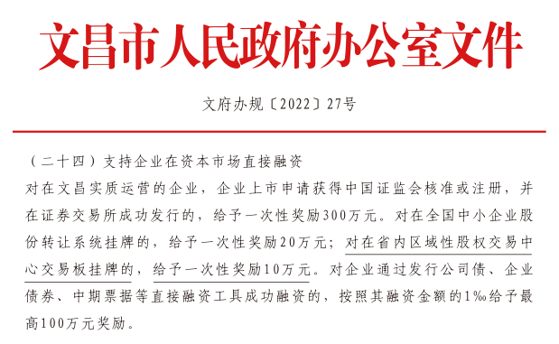 文昌市政策:文府辦規(guī)[2022] 27號