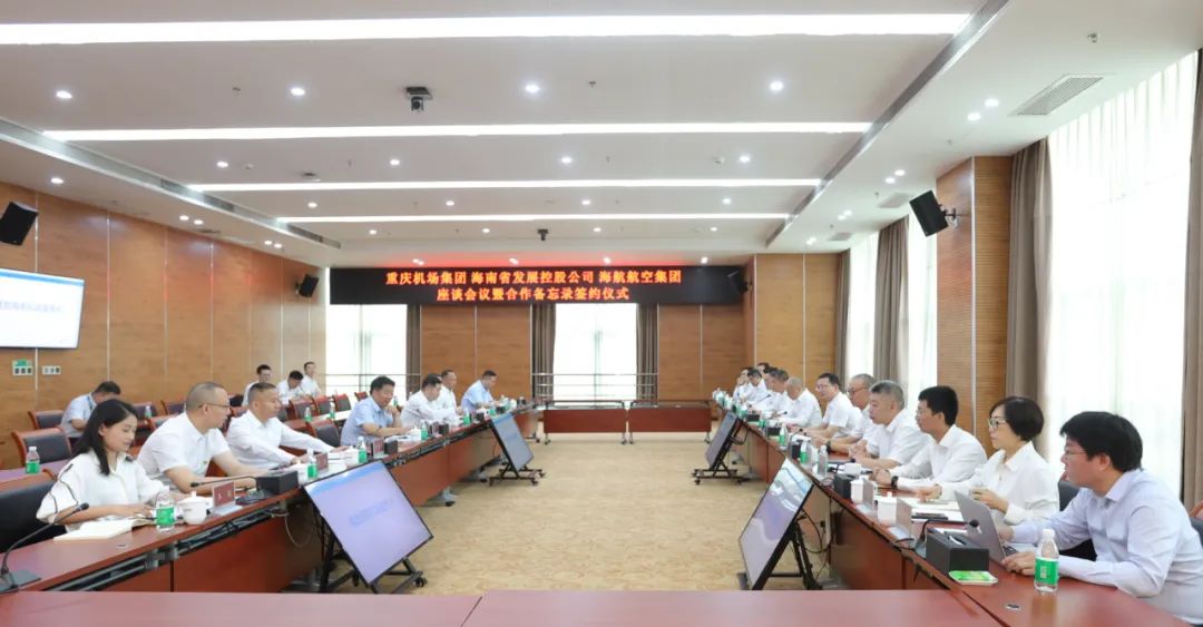6月28日上午,海南控股與重慶機(jī)場集團(tuán)、海航航空集團(tuán)在重慶舉行工作座談,三方圍繞優(yōu)勢資源互補(bǔ)、航線網(wǎng)絡(luò)布局優(yōu)化、臨空產(chǎn)業(yè)發(fā)展、機(jī)場商業(yè)運(yùn)營等進(jìn)行經(jīng)驗(yàn)分享與友好交流。??诿捞m機(jī)場與重慶江北機(jī)場、海南航空簽署合作備忘錄。海南控股黨委書記、董事長周軍平,重慶機(jī)場集團(tuán)董事長戴科、總經(jīng)理黃偉,海航航空集團(tuán)總裁、海南航空董事長丁擁政出席座談會(huì)并見證簽約。