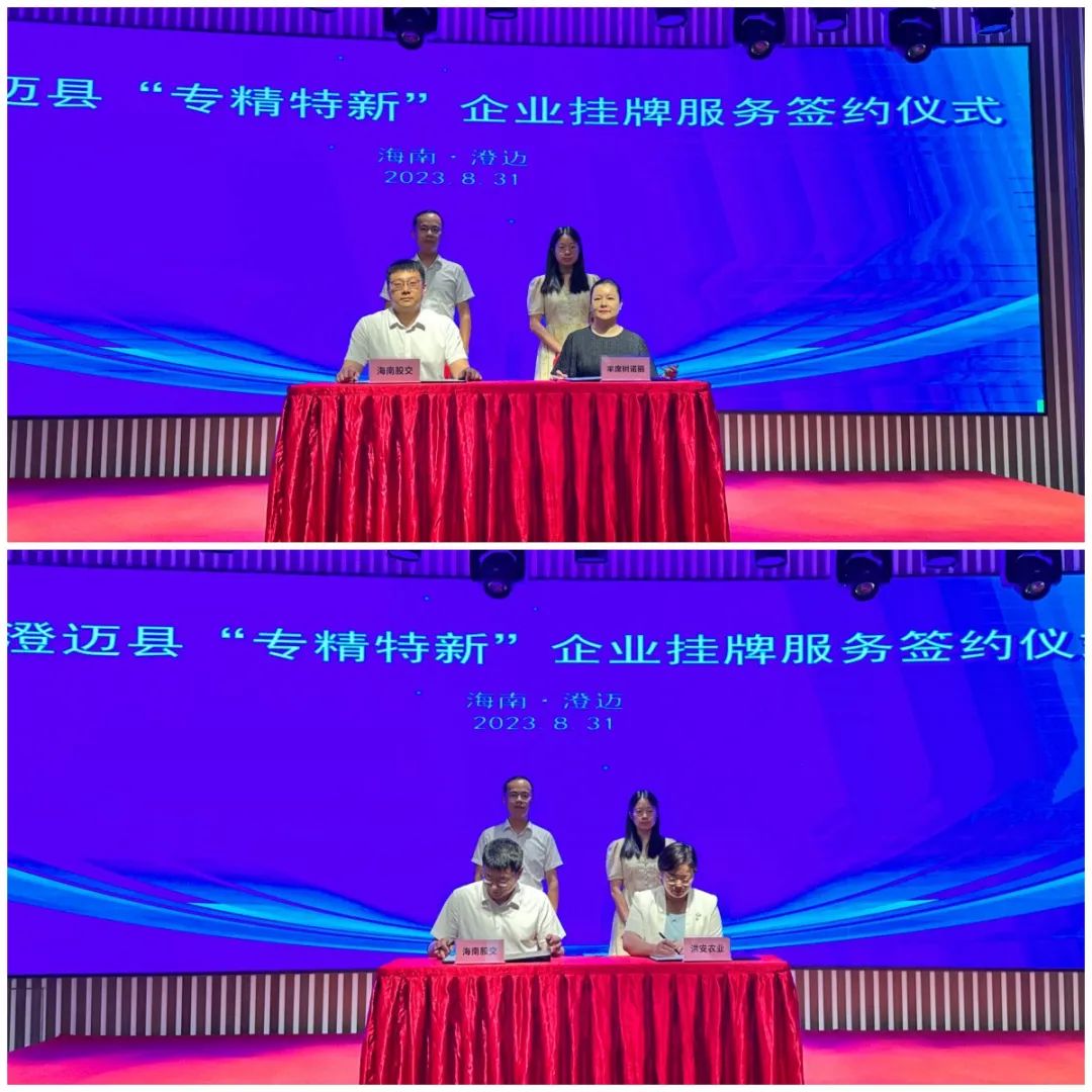 會(huì)上,海南股交分別與澄邁“專精特新”企業(yè)海南豐席樹諾麗產(chǎn)業(yè)有限責(zé)任公司、海南洪安農(nóng)業(yè)有限公司兩家企業(yè)簽訂掛牌服務(wù)協(xié)議,后續(xù)將在企業(yè)改制、投融資、培訓(xùn)、咨詢等方面為兩家企業(yè)提供深度服務(wù),助力企業(yè)規(guī)范、快速發(fā)展。
