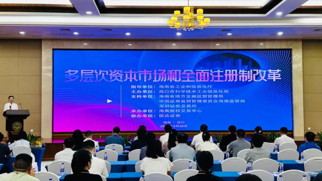 為幫助??谄髽I(yè)掌握最新政策形勢(shì),助力企業(yè)搶抓機(jī)遇、借助多層次資本市場實(shí)現(xiàn)高質(zhì)量發(fā)展,4月20日,由海口市科工信局主辦、海南股權(quán)交易中心承辦、信達(dá)證券協(xié)辦的“多層次資本市場和全面注冊(cè)制改革”專題培訓(xùn)活動(dòng)在海南大學(xué)國際學(xué)術(shù)交流中心舉辦,活動(dòng)得到了海南省金融監(jiān)管局、海南證監(jiān)局、深圳證券交易所的支持,海口市中小企業(yè)代表近70人參加本次培訓(xùn)活動(dòng)。
