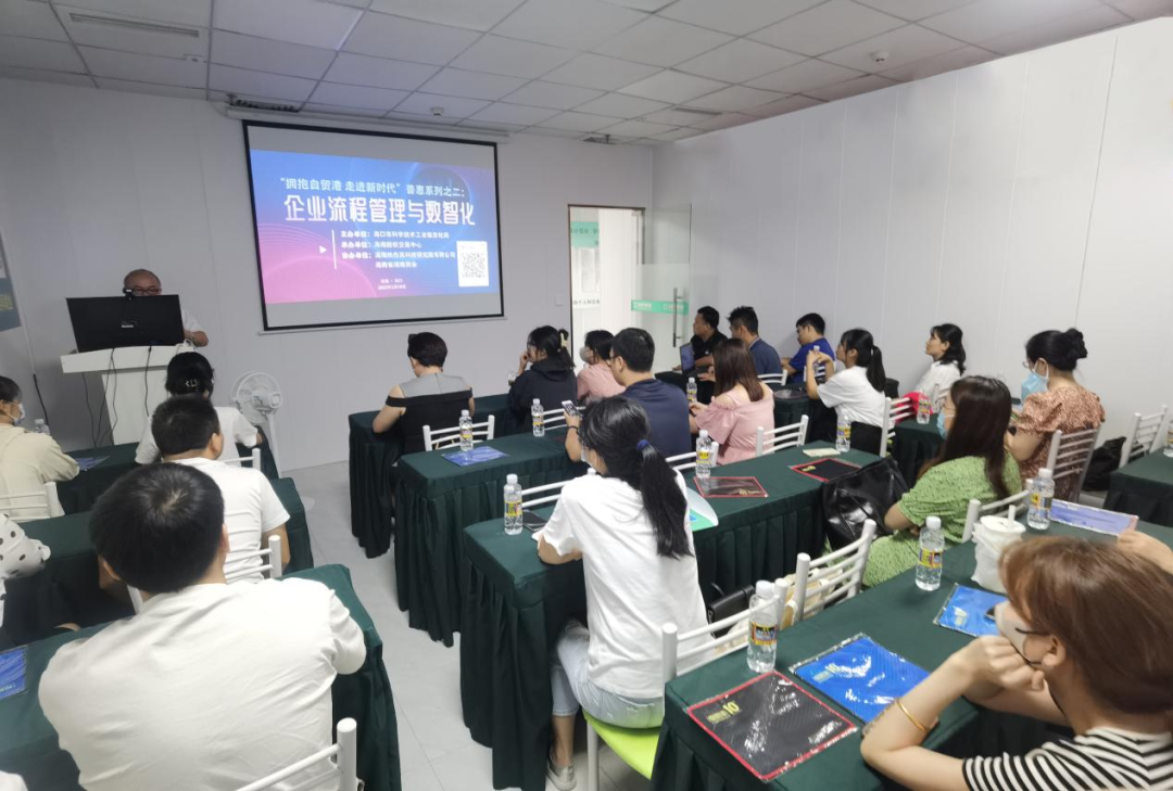 活動在??谥懿髲B舉行,由海南知與行信息技術(shù)有限公司創(chuàng)始人王義/總經(jīng)理向我省中小企業(yè)分享企業(yè)企業(yè)流程管理與數(shù)智化知識,幫助企業(yè)提升流程化管理的合法性與科學(xué)性。約30家企業(yè)到場參加培訓(xùn)。