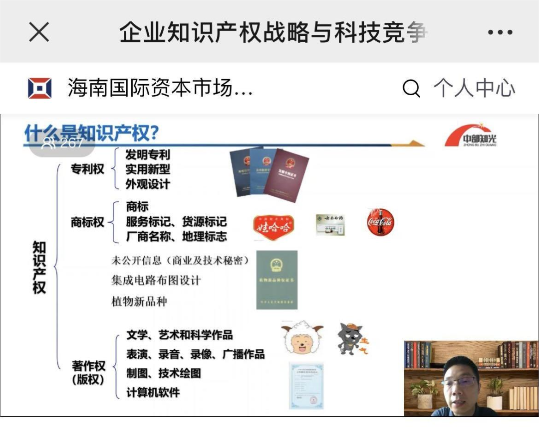 活動在海南股交國際資本市場學(xué)院平臺進(jìn)行線上培訓(xùn),由湖北省知識產(chǎn)權(quán)與創(chuàng)新發(fā)展研究院研究員余健講師從知識產(chǎn)權(quán)的重要性、企業(yè)科技創(chuàng)新戰(zhàn)略建議及企業(yè)知識產(chǎn)權(quán)戰(zhàn)略建議等多方面展開培訓(xùn)。共計266家次企業(yè)參與培訓(xùn)。