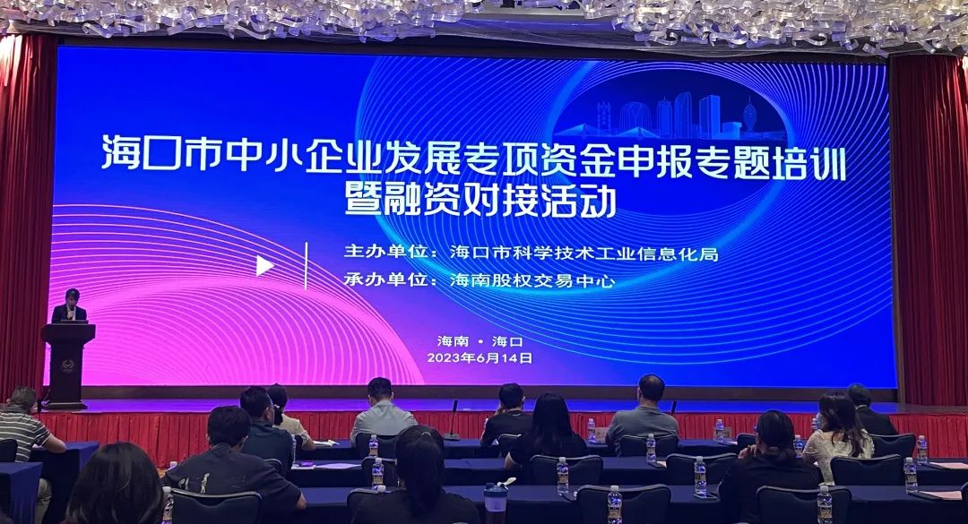 6月14日上午,由??谑锌乒ば啪种鬓k、海南股交承辦的??谑兄行∑髽I(yè)發(fā)展專項資金申報專題培訓(xùn)暨融資對接活動在海口舉辦。