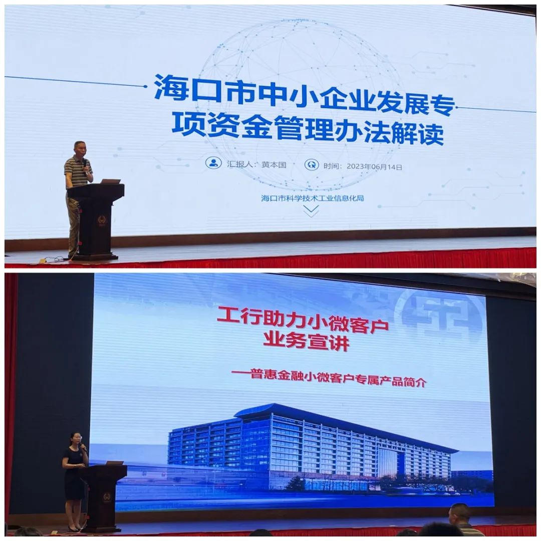 海口市科工信局解讀了《??谑兄行∑髽I(yè)發(fā)展專項資金管理辦法》;中國工商銀行上臺宣介該行特色的普惠金融信貸產(chǎn)品。會后,針對參會企業(yè)提出的專項資金申報流程及貸款流程等問題,現(xiàn)場工作人員給予了解答。