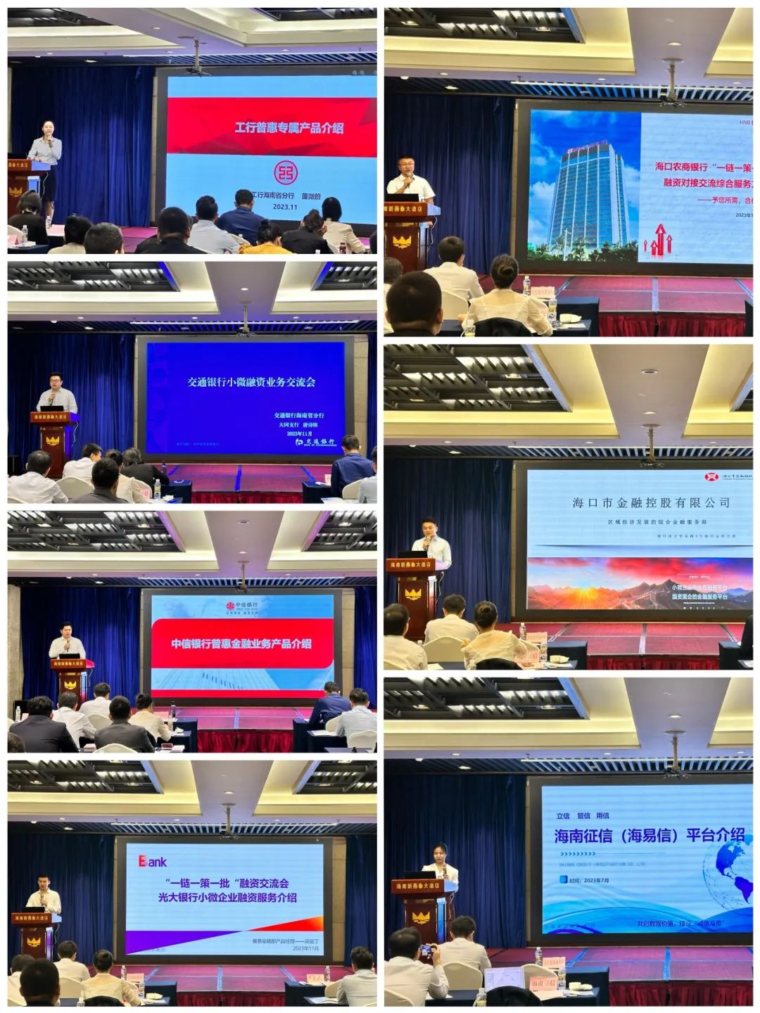 隨后,中國工商銀行、交通銀行、中信銀行、光大銀行、海南省農(nóng)信社、??谑腥谫Y擔(dān)保、海南征信等金融機(jī)構(gòu)相關(guān)人員依次分享了各自目前最新的融資產(chǎn)品及相關(guān)申請(qǐng)條件,并圍繞企業(yè)實(shí)際融資需求,進(jìn)行了有針對(duì)性的講解。