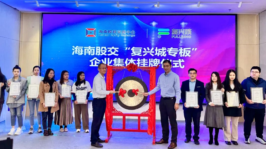 隨著鄧銳、羅洋、吳杰、周博共同按下啟動(dòng)鍵,海南股交“復(fù)興城專(zhuān)板”正式啟動(dòng)。隨后,來(lái)自互聯(lián)網(wǎng)、綠色能源、電子商務(wù)、教育等領(lǐng)域的20家復(fù)興城入駐企業(yè)集體上臺(tái)鳴鑼?zhuān)械顷懞D瞎山弧皬?fù)興城專(zhuān)板”。