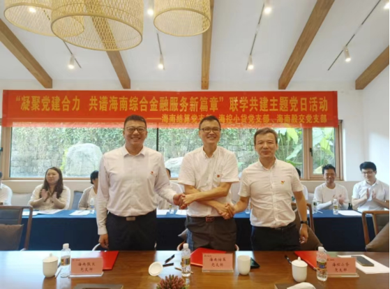 海南結算黨支部書記、董事長文于佳,??匦≠J黨支部書記、董事長潘沖,海南股交黨支部書記、董事長朱磊,以及各支部黨員同志、干部職工參加本次活動。