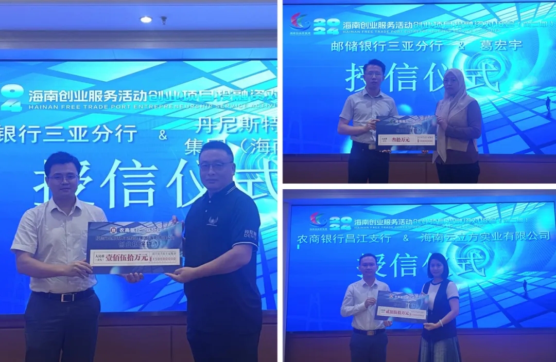 現(xiàn)場(chǎng)舉行了銀行授信儀式,中國(guó)郵政儲(chǔ)蓄銀行、海南農(nóng)村商業(yè)銀行分別為個(gè)人創(chuàng)業(yè)者及初創(chuàng)企業(yè)進(jìn)行授信,授信金額共計(jì)430萬(wàn)元,為我省創(chuàng)業(yè)企業(yè)及創(chuàng)業(yè)代表的發(fā)展注入資金支持。